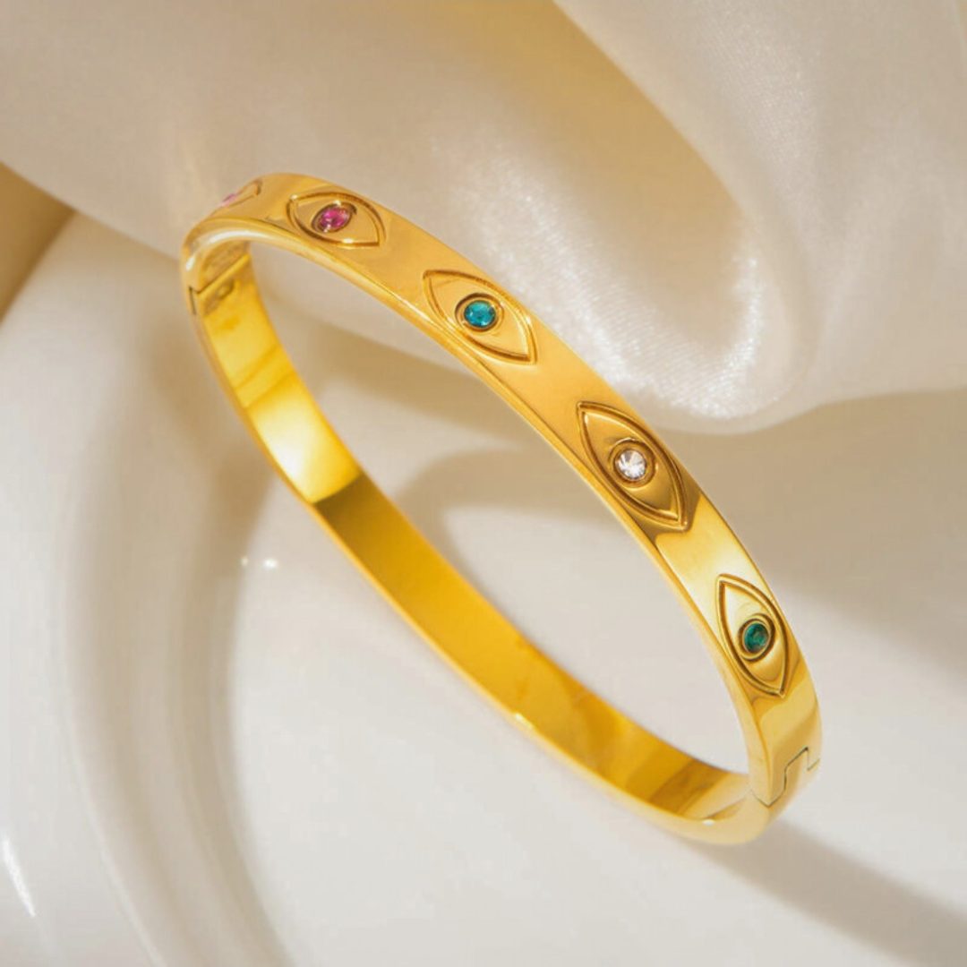 multi – colour zircon evil eyes style bangle bracelet rs 190